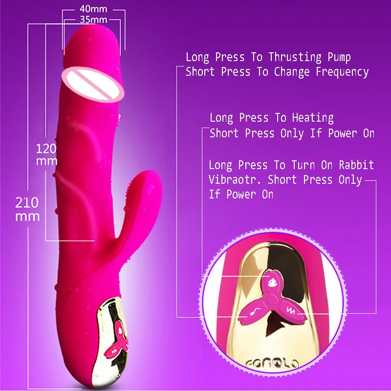 Discount Sex Products 10 modes G-spot Thrusting Rabbit Vibrator USB Female Masturbation Pump Heating Dildo V