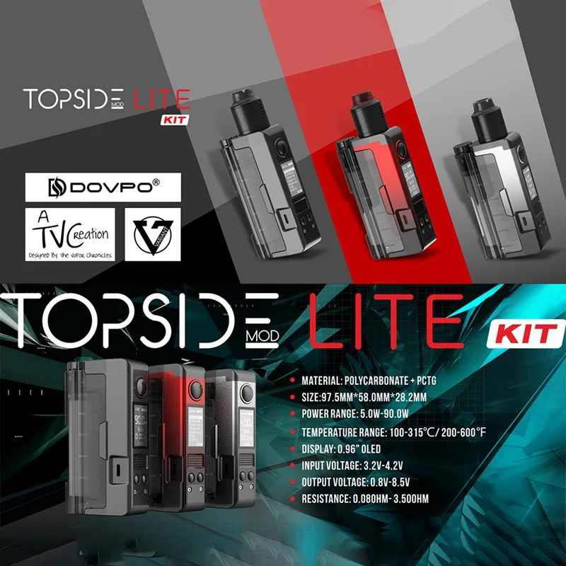 Best DOVPO Topside Lite Vape 90W Kit with 2 in 1 squonk Cigarette Electronic Vaper Mods 0.96-inch OLED d