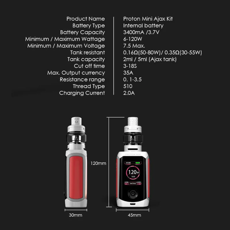 Home » Cheap , Electronic Cigaretes , Top Seller » Free Shipping Electronic Cigarette Innokin Proton Mini Ajax 120W Box Mod Kit Built-In 3400mAh Battery With Ajax S