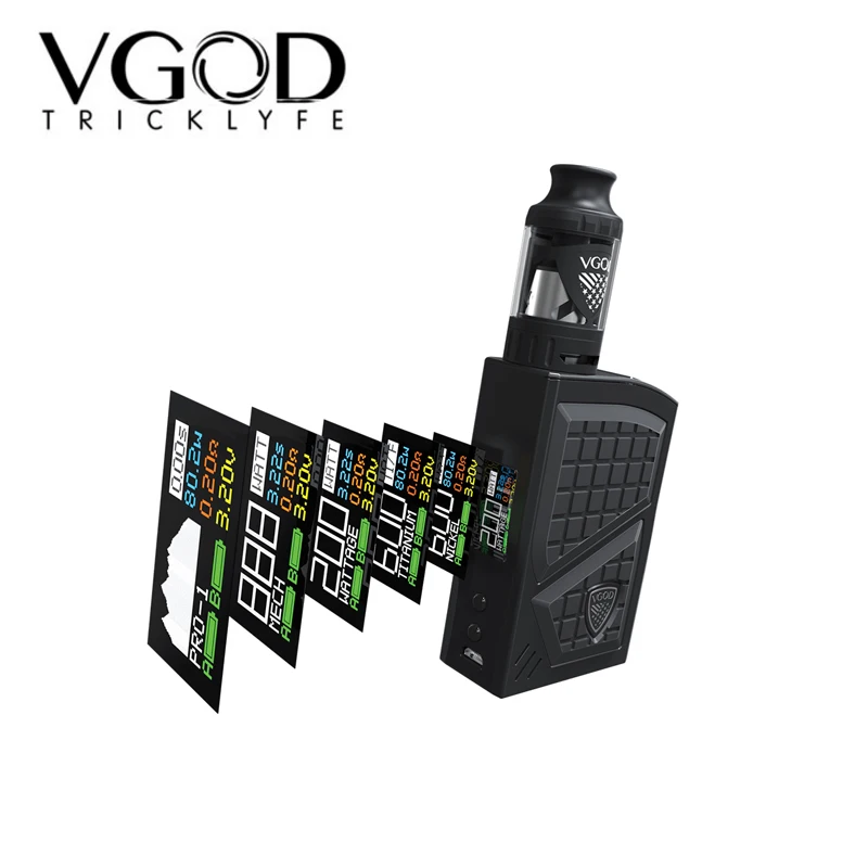Hot Product New Arrival Vgod Pro 200 Box Mod Starter Kit With VGOD SUBTANK 4mL Adjustable Vape Mod Dual 18650 B